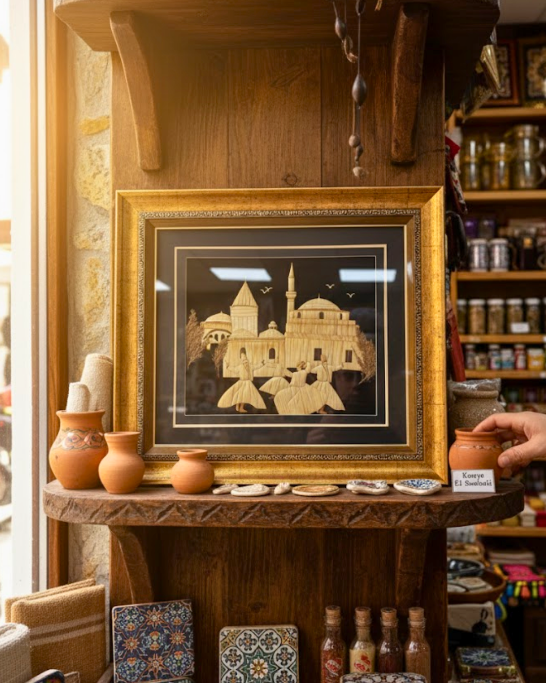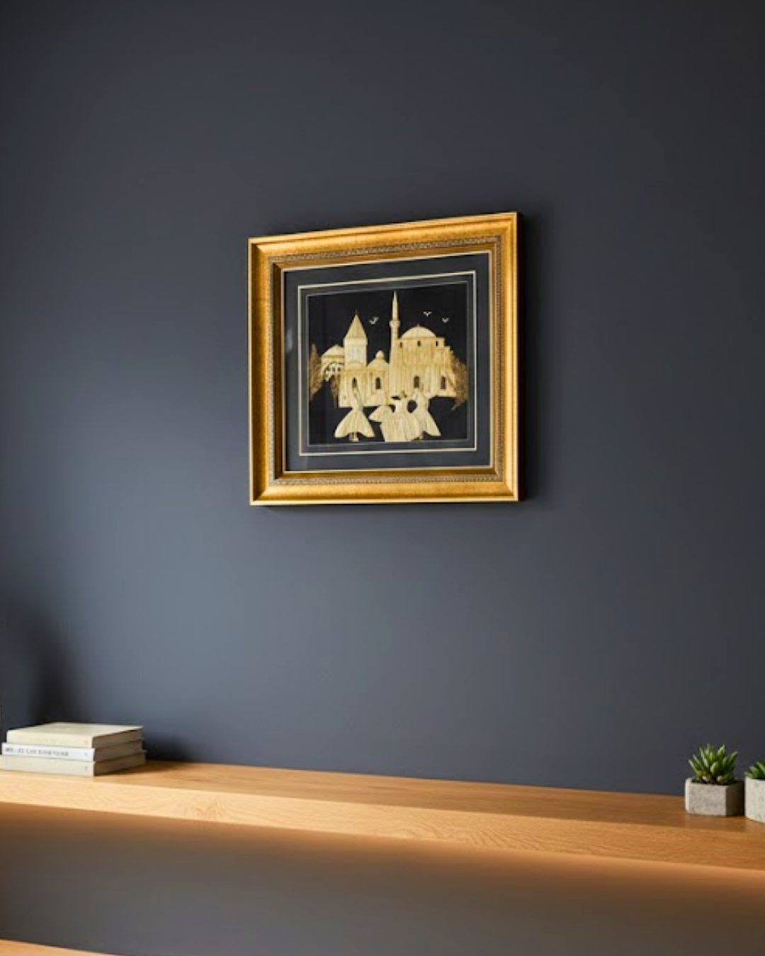 Semazen figürleri, Mevlânâ silueti ve mimari detaylar; sabır ve emekle işlenmiş olup bulunduğu ortama manevi bir atmosfer ve estetik bir şıklık katar. Salon, ofis, çalışma odası, butik, kafe ya da hediyelik olarak tercih edilebilir.