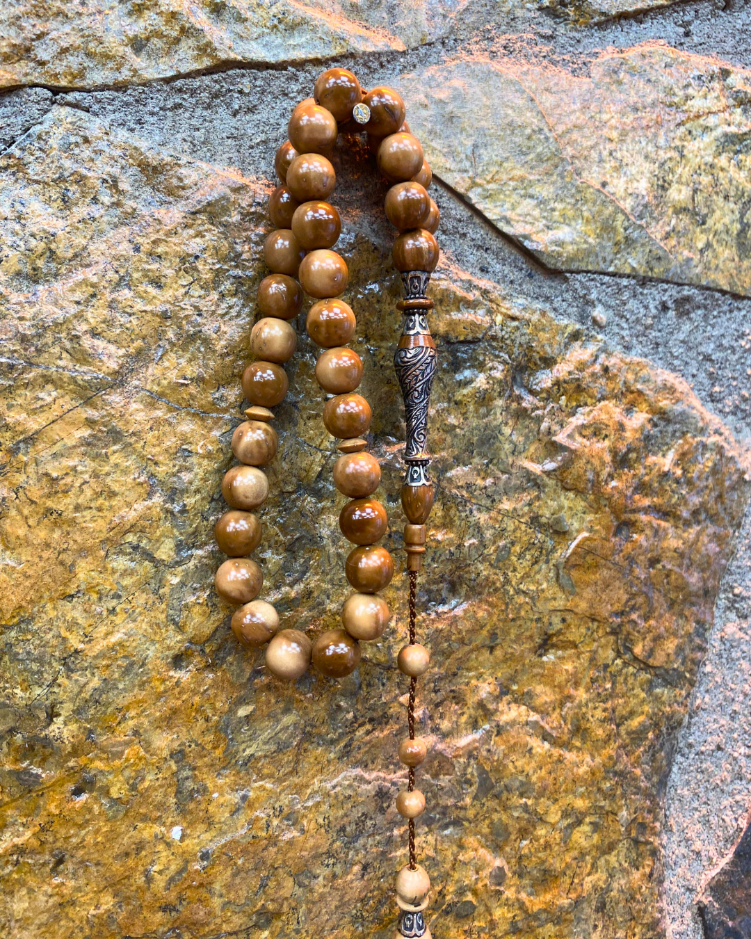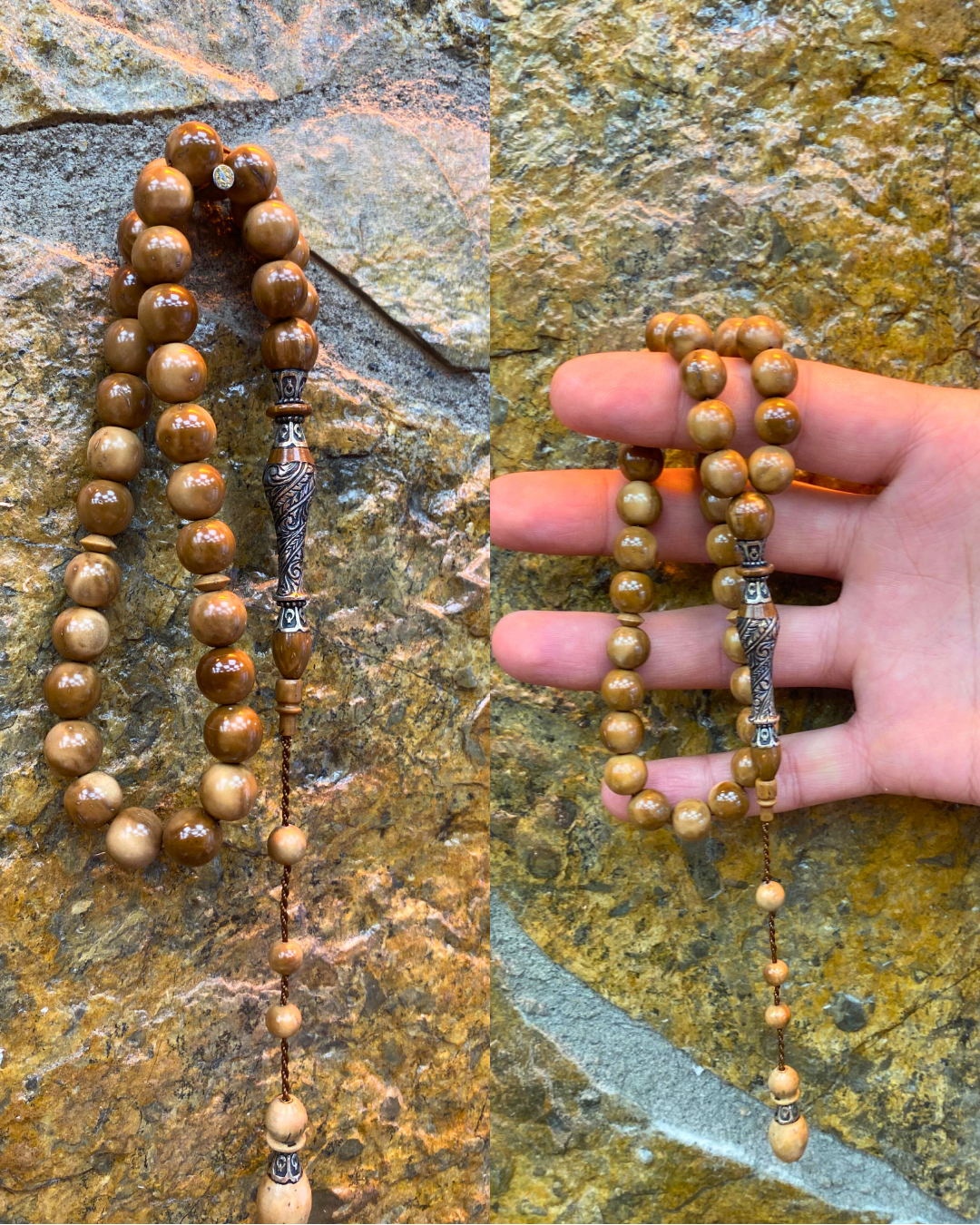 El Yapımı Kuka Ağacı Tesbih – Gümüş İşlemeli Nakkaş İmame